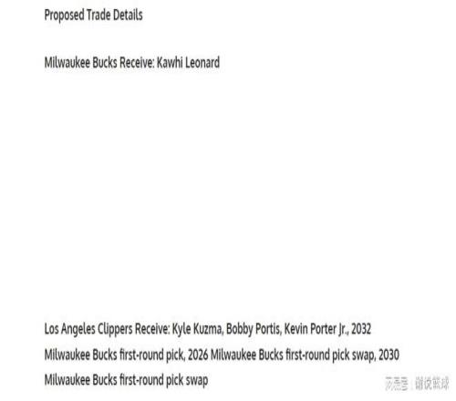 果然媒体FW撰写长文,建议快船尽早交易伦纳德,而且显得特别直白,送他去雄鹿联手字母哥再次争冠。而从快船的角度,换来三名雄鹿球员库兹马、波蒂斯和小凯文-波特,再加上多个未来首轮签跟互换权,显然如果快船真决定重建,用伦纳德换来这么多资产,应该也可以满意。