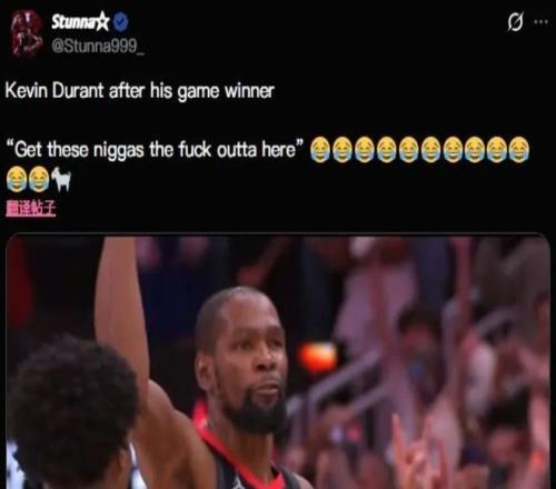 在命中了绝杀之后,杜兰特直接怒吼:“让这些黑鬼滚出去”。