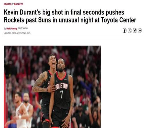 杜兰特3分绝杀旧主,火箭三杀太阳!KD:他们将我视作替罪羊赶走