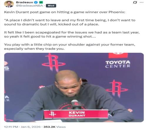 相信大家都看了杜兰特绝杀太阳赛后的采访,KD吐露了对前东家的不满,他很难受的说道:太阳原本是我最不愿离开的地方,我不想让外界听起来太夸张,但我还是会说我被他们踢出球队了。