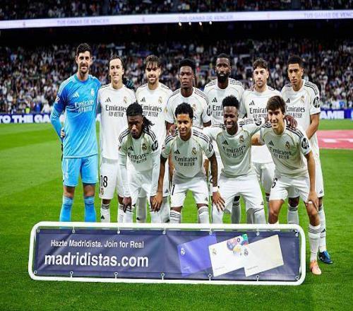 皇马首发:库尔图瓦/巴尔韦德、阿森西奥、吕迪格、卡雷拉斯/卡马温加、楚阿梅尼、贝林厄姆/罗德里戈、贡萨洛·加西亚、维尼修斯