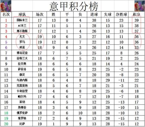 意甲最新积分战报争4惨烈!尤文力压罗马守住第4黑马3连胜紧追
