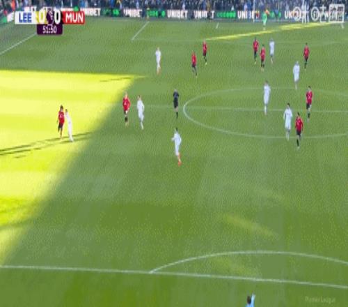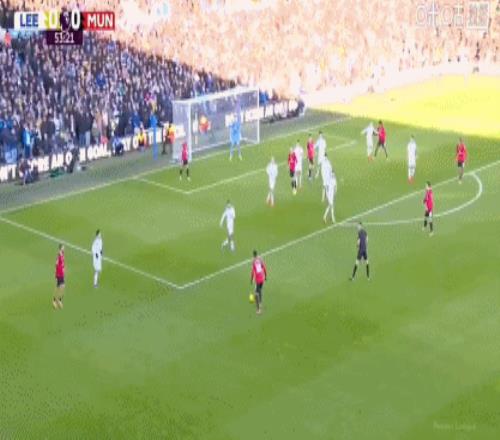 第62分钟,海文防守不利,阿伦森小角度破门,利兹联1-0领先曼联!