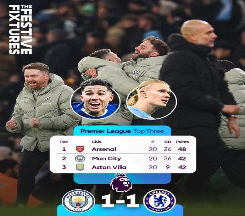 北京时间1月5日01:30,英超联赛第20轮,曼彻斯特城坐镇伊蒂哈德球场迎战切尔西。上半场哈兰德中柱,赖因德斯爆射建功,切尔西零射正,曼城暂1-0切尔西;下半场内托失良机,格瓦迪奥尔伤退,恩佐绝平,最终曼城1-1切尔西,距榜首6分。
